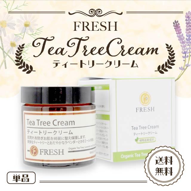 ティートリークリーム 60g 手荒れ ハンドクリーム 肌荒れ 乾燥肌 敏感肌 ニキビ ケア クリーム アクネケア スキンケア 保湿 制汗 デオトラント オーガニック フレッシュ アロマの香り tea tree cream 100% 植物由来 無添加 FRESH ティーツリーフレッシュ