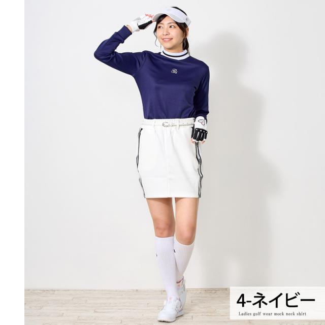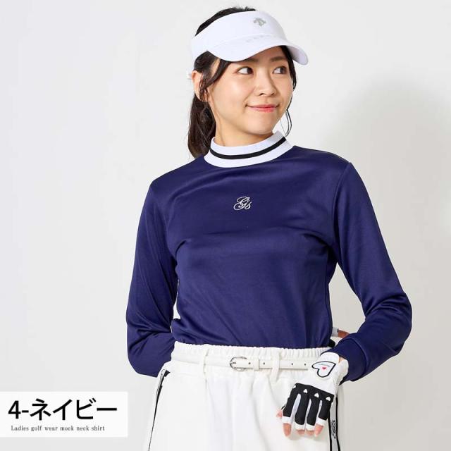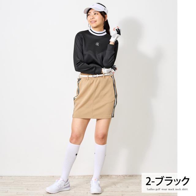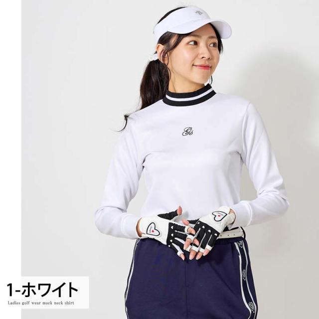 S~XL 新作 ゴルフウェア レディース モックネック gs GOLF ポロシャツ ハイネック 長袖 ストレッチ トップス ロゴ刺繍 ライン 無地 おしゃれ かわいい 韓国系 春夏 秋冬 送料無料 ゆうパケ
