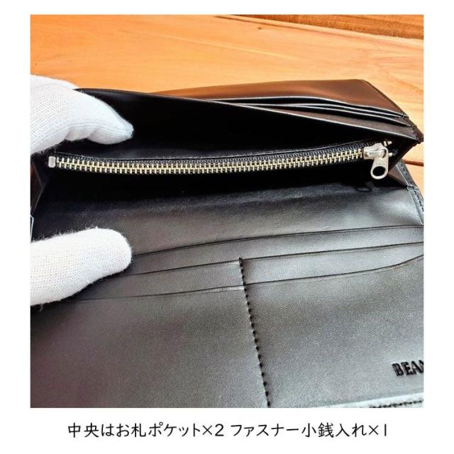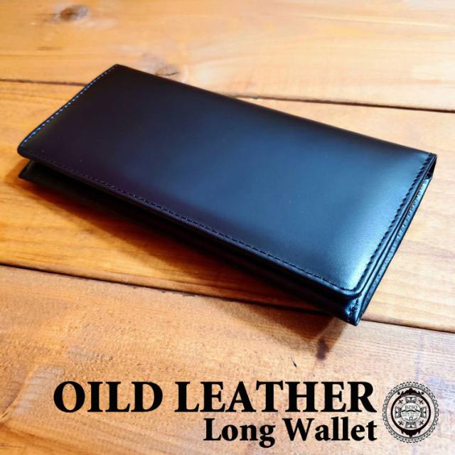 オイルレザー ロングウォレット 長財布 ロング ウォレット 銀面 牛革 長財布 YKK社ファスナー 財布 レザー サイフ ブラック 一粒万倍日 4091-sb-bk