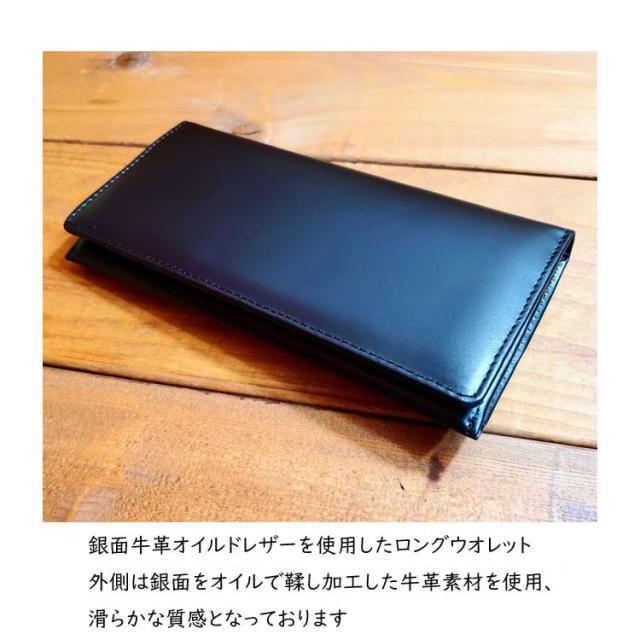 銀面牛革オイルドレザーを使用したロングウオレットです