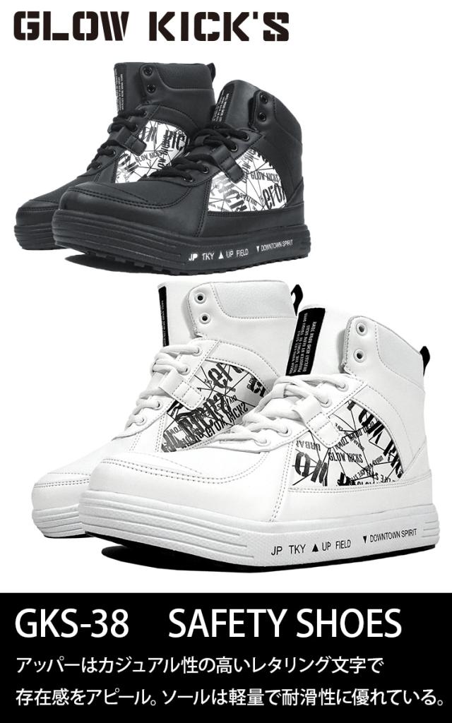 ケイゾック K-ZOC セーフティミッド(ヒモ)GKS-38 ハイカット 安全靴 3E 鋼製先芯 PU合皮 マジックテープ ロゴテープ プルストラップ 軽量 耐滑 EVA合成ゴム カジュアル 作業服 作業着 GLOW KICK’S SAFETY SHOES