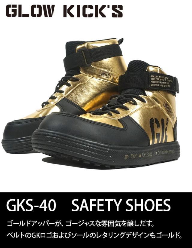 ケイゾック K-ZOC セーフティミッド(ゴム&マジック)GKS-40 ハイカット 安全靴 3E 鋼製先芯 PU合皮 マジックテープ ロゴ プルストラップ 軽量 耐滑 EVA合成ゴム カジュアル 作業服 作業着 GLOW KICK’S SAFETY SHOES