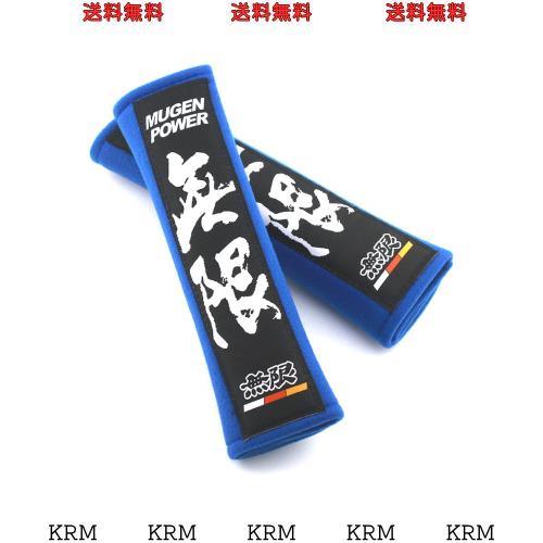 ◆商品名:シートベルトカバー シートベルトパッド シートベルトショルダー 肩パット 布 刺繍入り 2枚セット 汎用 (無限, ブルー)