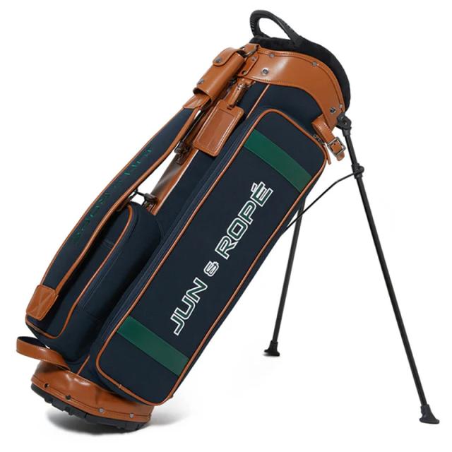 JUN&ROPE 8.5型 カレッジロゴ 合皮コンビ使い ERX34200 スタンド式 キャディバッグ 【新品】TCBR ジュンアンドロペ ジュンロペ ゴルフ用バッグ スタンドバッグ メンズ レディース OCT1 キャディーバック キャディーバック