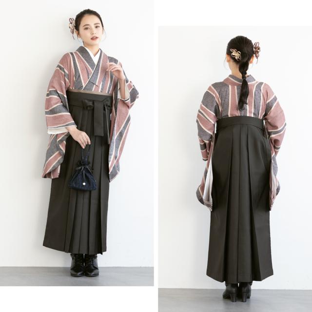 着物は、身丈が短く動きやすい半着タイプです。 袴は、合わせやすいシンプルな無地です。