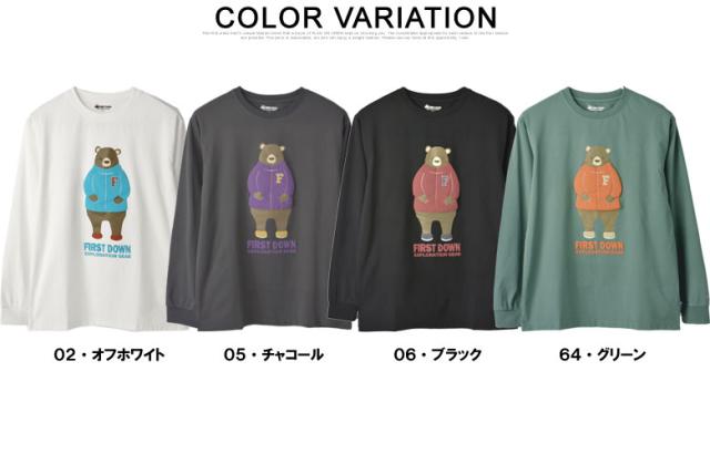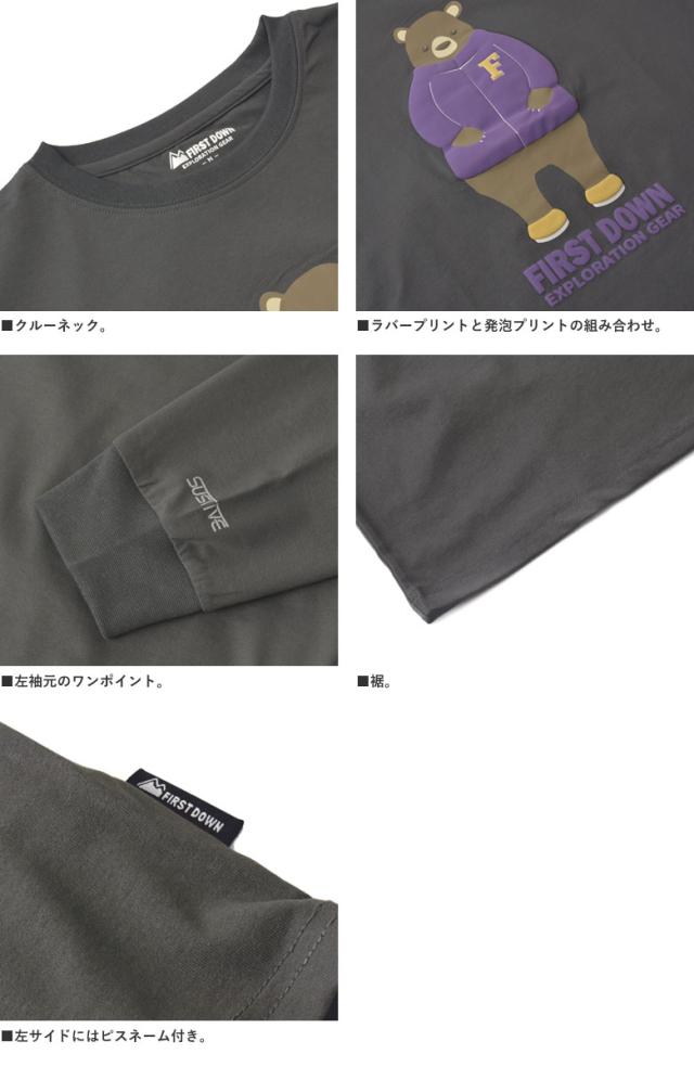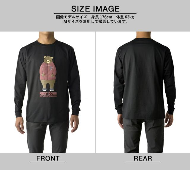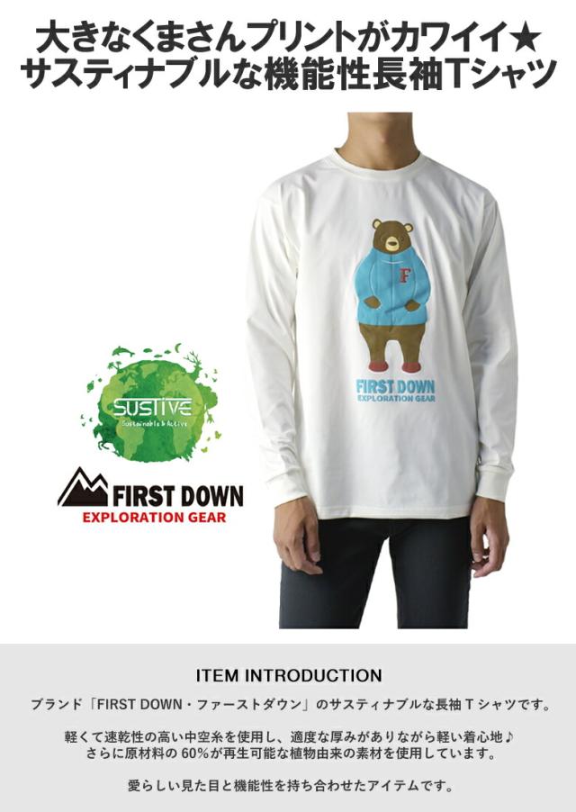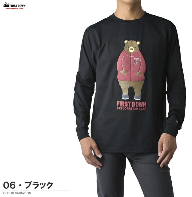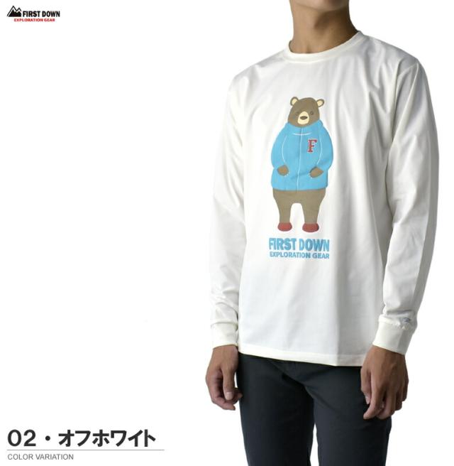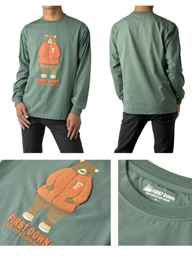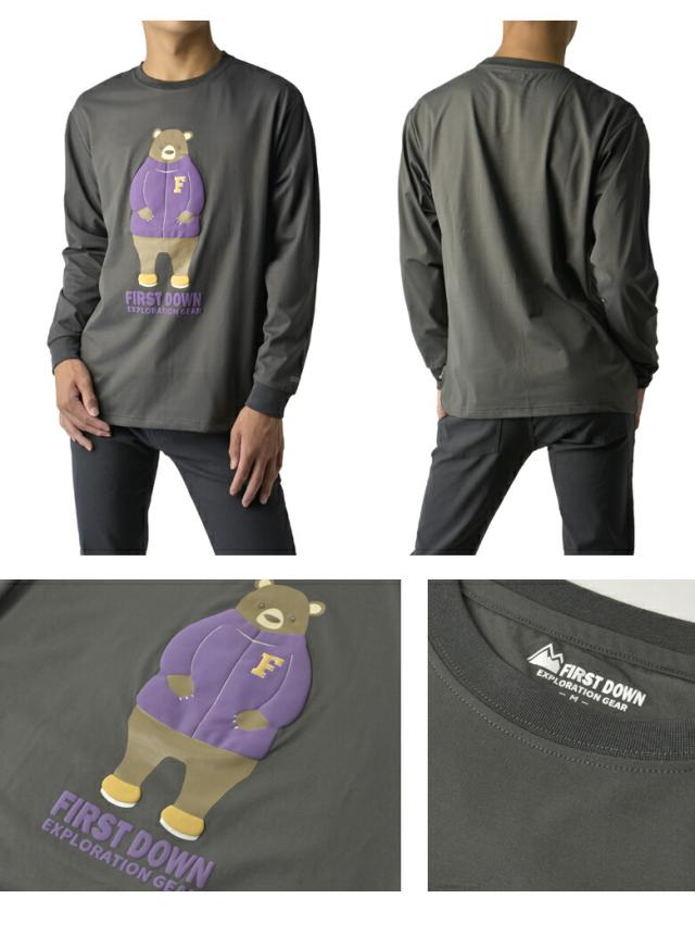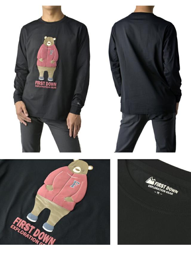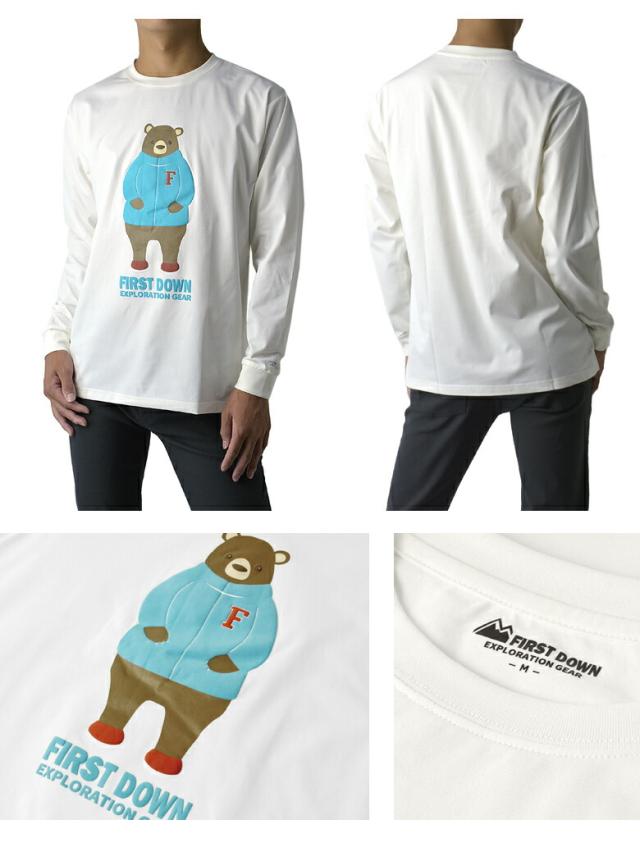 ポイント10%★FIRSTDOWN ファーストダウン メンズ 長袖Tシャツ ベアプリント くまさんプリント 軽量 速乾 撥水 テフロン加工 発泡プリント サスティナブル 正規品【A2Z】【パケ1】