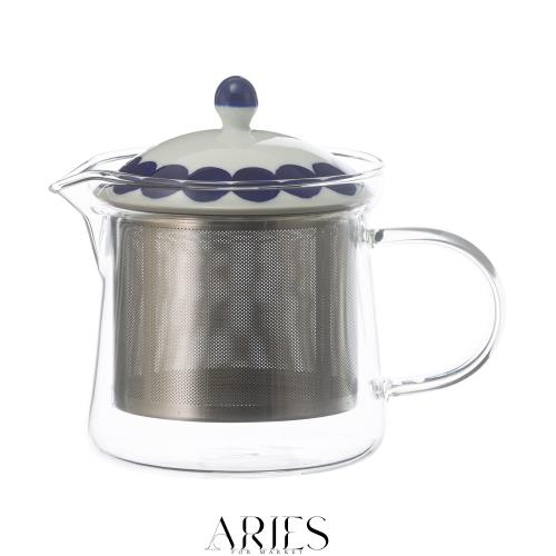 ◆商品名:西海陶器 波佐見焼 一誠陶器 ガラス ティーポット 小 約425ml (スーパーステンレス茶こし付) コリエ 青 ブルー 日本製 20496