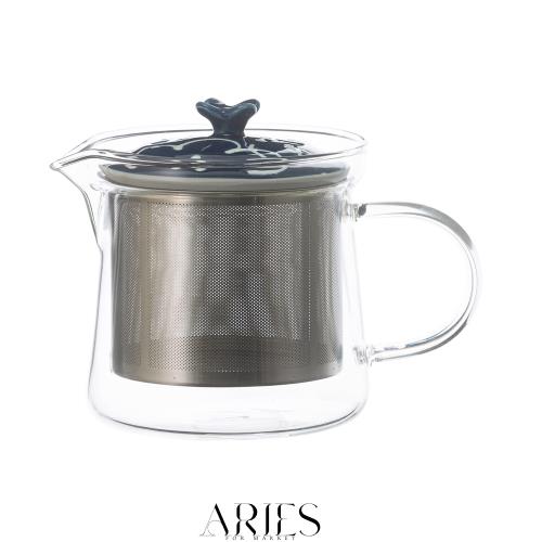 西海陶器 波佐見焼 一誠陶器 ガラス ティーポット 小 約425ml (スーパーステンレス茶こし付) 花紋 ネイビー 日本製 20494
