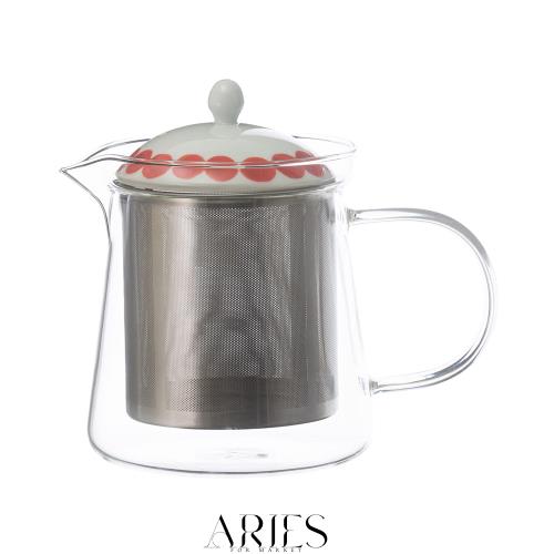 ◆商品名:波佐見焼 一誠陶器 ガラス ティーポット 大 約600ml (スーパーステンレス茶こし付) コリエ 赤 レッド 日本製 20497