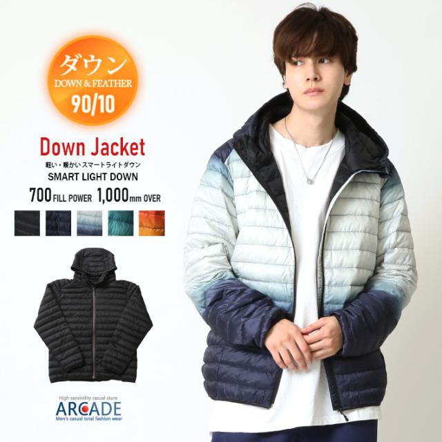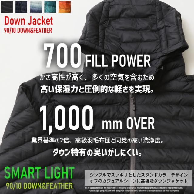 ダウンジャケット メンズ アウター 冬 スマートライト ダウンパーカー フード フーディ 軽量 撥水 無地 カモフラ迷彩 ブラック テックウェア