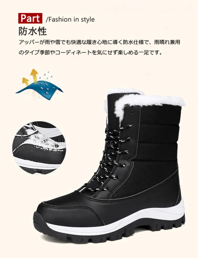 スノーシューズ レディース スノーブーツ 長靴 サイドジップ 紐靴 トレッキングブーツ 防水 防寒 保暖 滑りにくい 冬 雨 雪 綿靴 雪靴 撥水 滑りにくい ウィンターブーツ アウトドア 靴 あったか ブーツ 暖かい ショート丈