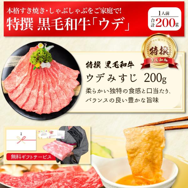 最高級 特撰 黒毛和牛 ウデ みすじ スライス 200g しゃぶしゃぶ すき焼き お肉 肉 ギフト 内祝い お返し プレゼント 牛肉 焼肉 焼き肉 牛 高級 和牛 牛 赤身 誕生日 国産 食品 食べ物 冷凍 御祝 ポイント消化 内祝 お礼 御礼 すき焼き肉 BBQ お歳暮 御歳暮