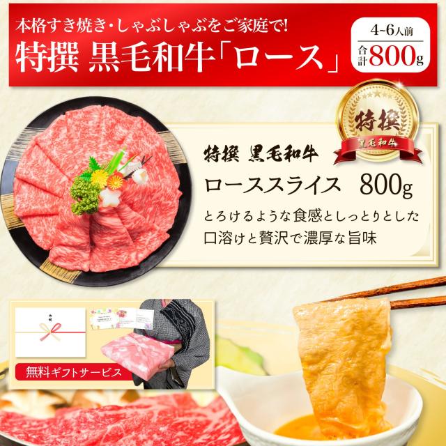 特撰 黒毛和牛 しゃぶしゃぶ すき焼き ロース スライス 800g 牛肉 肉 ギフト 国産 お肉 高級 和牛 焼肉 焼き肉 冷凍 食品 食べ物 送料無料 誕生日 プレゼント 内祝い お返し 御祝 内祝 お礼 御礼 すき焼き肉 BBQ メガ盛り お歳暮 御歳暮 お年賀