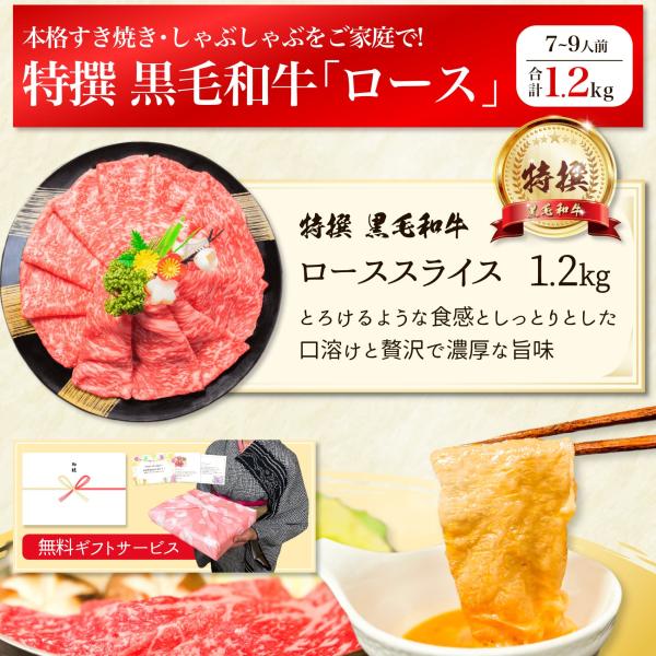 特撰 黒毛和牛 しゃぶしゃぶ すき焼き ロース スライス 1.2kg 牛肉 肉 ギフト 国産 お肉 高級 和牛 焼肉 焼き肉 冷凍 食品 食べ物 送料無料 誕生日 プレゼント 内祝い お返し 御祝 内祝 お礼 御礼 すき焼き肉 BBQ メガ盛り お歳暮 御歳暮 お年賀