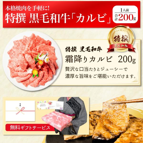 焼肉 特撰 黒毛和牛 霜降り カルビ 200g 牛肉 国産 高級 肉 ギフト 焼き肉 BBQ バーベキュー 食品 食べ物 プレゼント 誕生日 内祝い お返し 早割 ポイント消化 焼肉用 贈り物 お礼 御礼 御祝 使い切り 三角バラも贅沢に お歳暮 御歳暮