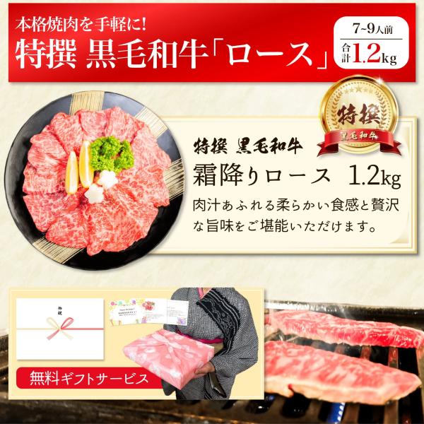 焼肉 特撰 黒毛和牛 霜降り ロース 1.2kg 国産 牛肉 高級 肉 ギフト 和牛 焼き肉 BBQ バーベキュー 冷凍 食品 食べ物 プレゼント 誕生日 内祝い お返し お礼 御礼 贈り物 贈答品 早割 送料無料 焼き肉用 メガ盛り お歳暮 御歳暮 お年賀