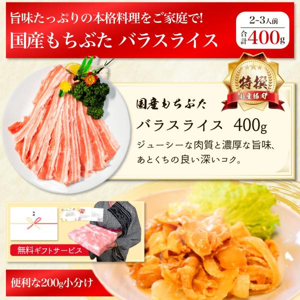 特撰 国産 もちぶた 豚バラ スライス 400g 豚肉 豚バラスライス バラ肉 バラ 豚バラ 豚ばら 焼肉 しゃぶしゃぶ メガ盛り 小分け 鍋 お肉 肉 ギフト 高級 冷凍 食品 食べ物 誕生日 プレゼント 内祝い お返し 内祝 御礼 お礼 ポイント消化