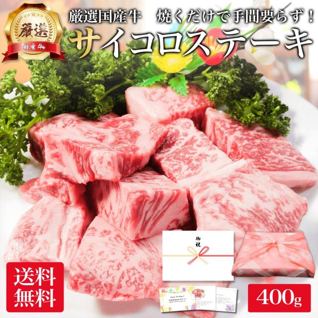 厳選 国産 牛肉 サイコロ ステーキ 400g ロース リブ サーロイン ステーキ肉 焼肉 焼き肉 用 お肉 肉 ギフト 高級 冷凍 食品 食べ物 送料無料 バーベキュー プレゼント 誕生日 内祝い お返し 贈り物 早割 セール お礼 御礼 材料 カット済み お歳暮 御歳暮 お年賀