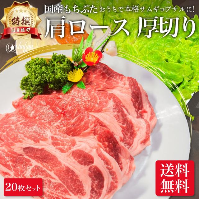 特撰 国産 もちぶた 豚肉 肩ロース 厚切り 20枚 セット 計 2kg 焼肉 サムギョプサル 焼き肉 トンテキ ステーキ とんかつ カレー シチュー 煮込み 料理 酢豚 赤身 業務用 ギフト プレゼント 食品 食べ物 メガ盛り 小分け 冷凍 内祝い お返し