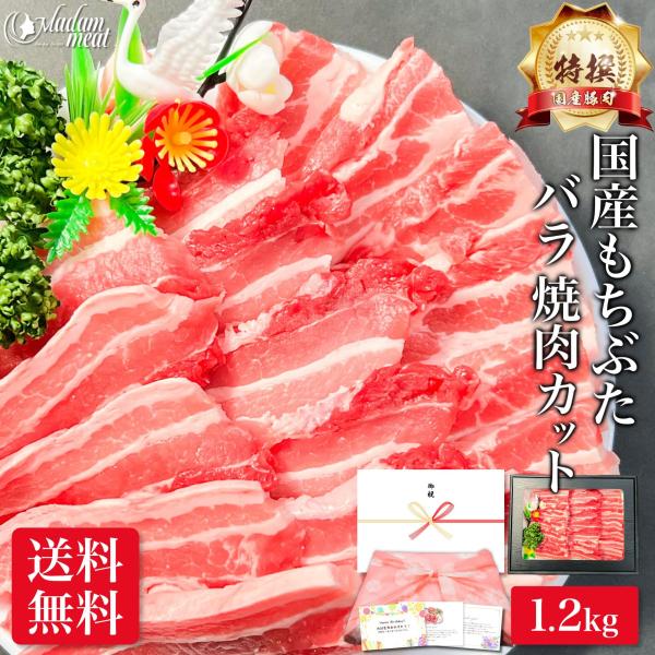 特撰 国産 もちぶた 豚肉 バラ 焼肉 カット 1.2kg 送料無料 サムギョプサル 焼肉 焼き肉 お試し お肉 豚 ぶた お祝い プレゼント ギフト 切り落とし