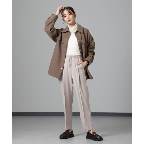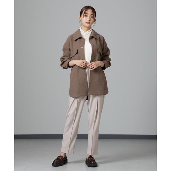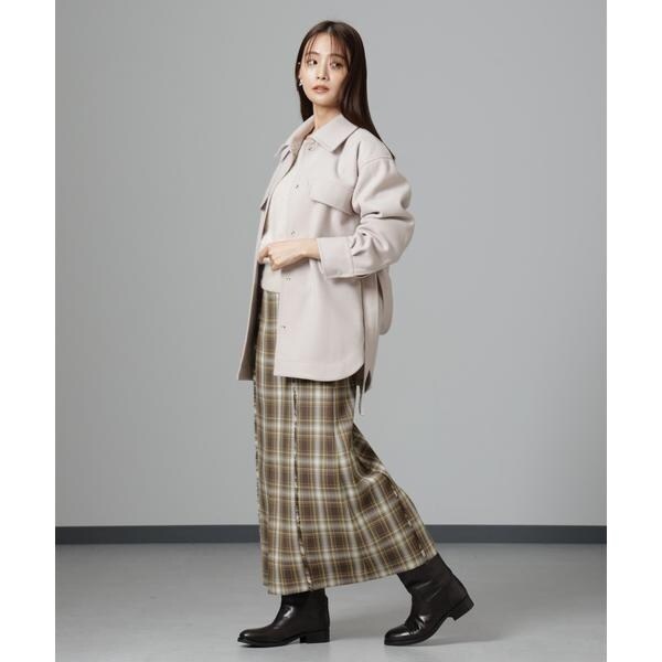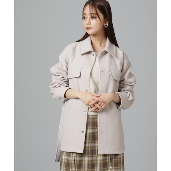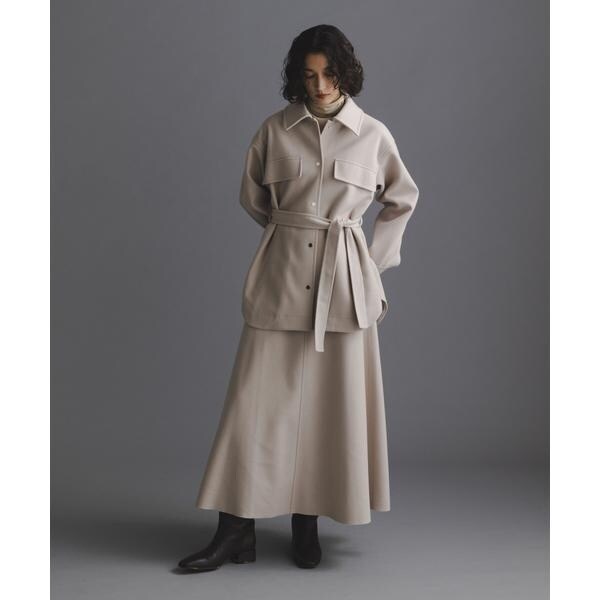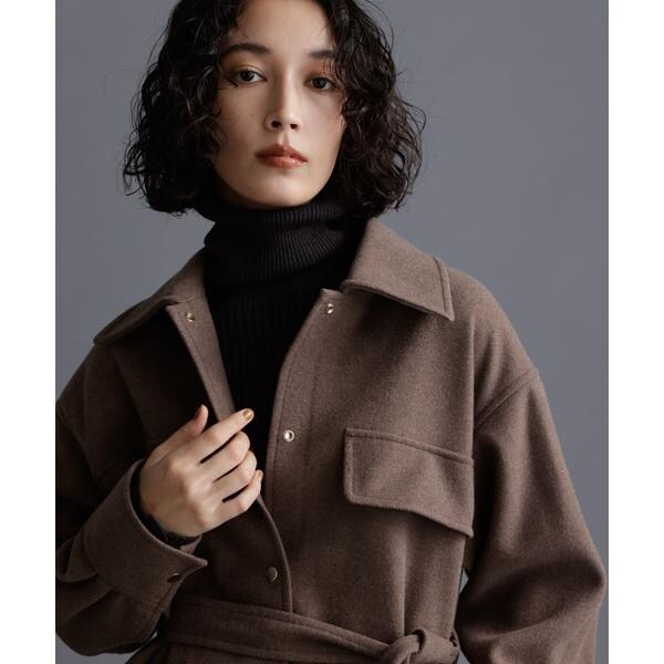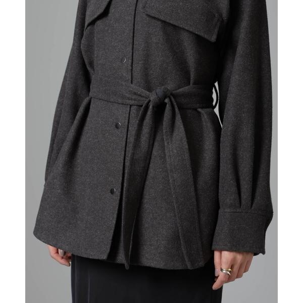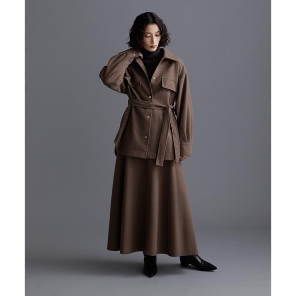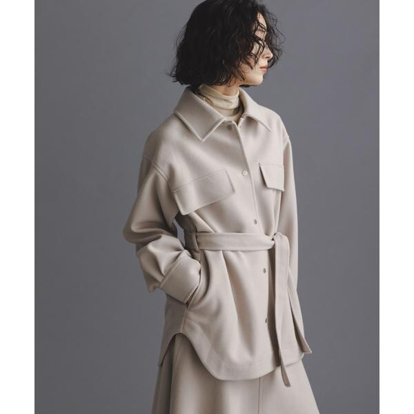 ヒップ周りをカバーしてくれる長めの丈感と女性らしいフレアシルエットの好バランスなベルテッドジャケット。気温が下がりきらない時でもシャツ型なので前をあけて羽織ったり、袖をロールアップしたり軽く着ることができ、寒い時期はタートルを着たり前をとめてベルテッドで防寒対策もできる万能アイテム。着こなしでスタイリングを変化させながら長く着られるのもおすすめです!
