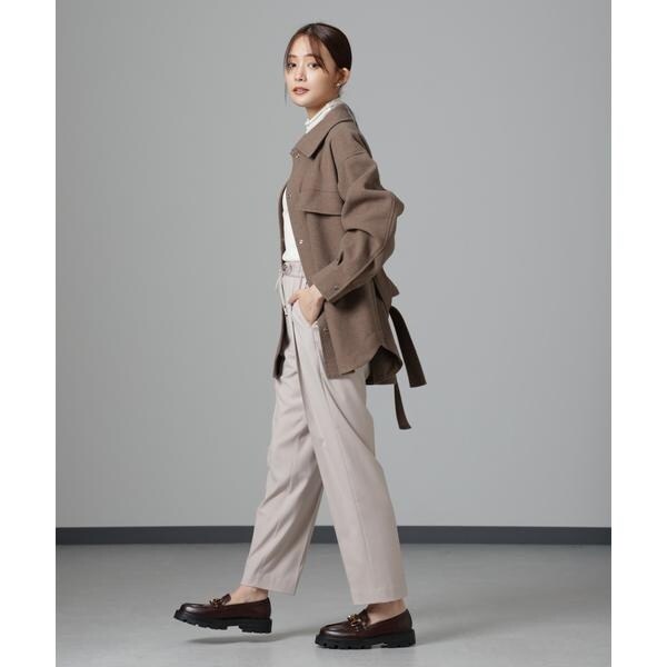 ・ウエストマークして着ることもできますが、ベルトを後ろで結んでぱさっと羽織るスタイリングも◎