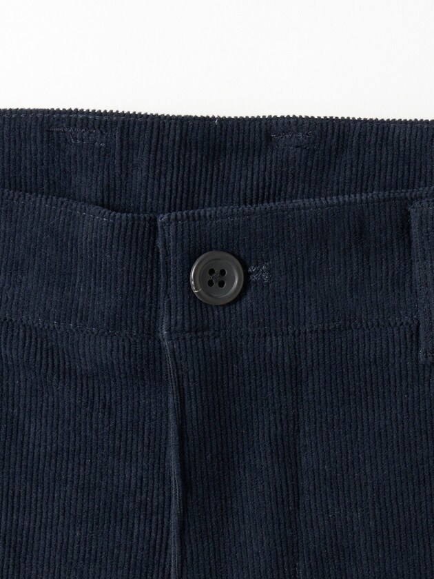 ポリエステルコットンのコーデュロイ生地を使用したストレートパンツ。キックバックの良いストレッチ性としなやかさが特徴的な生地を使用。爽やかなアイボリーと定番ネイビーの2色展開。