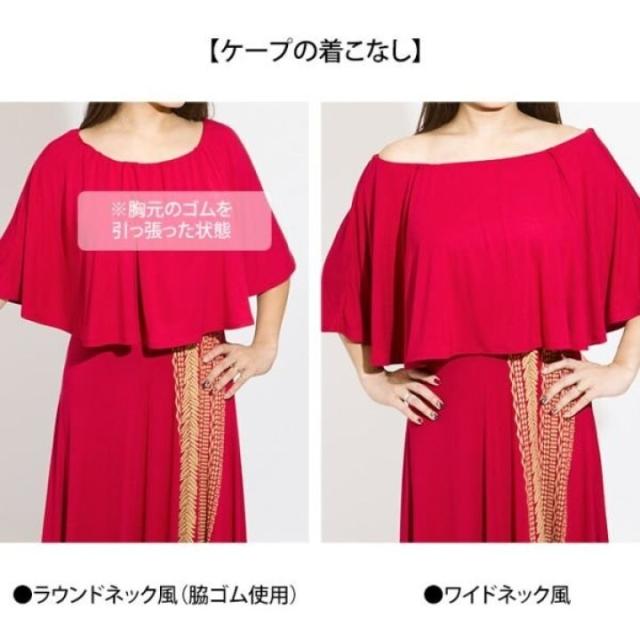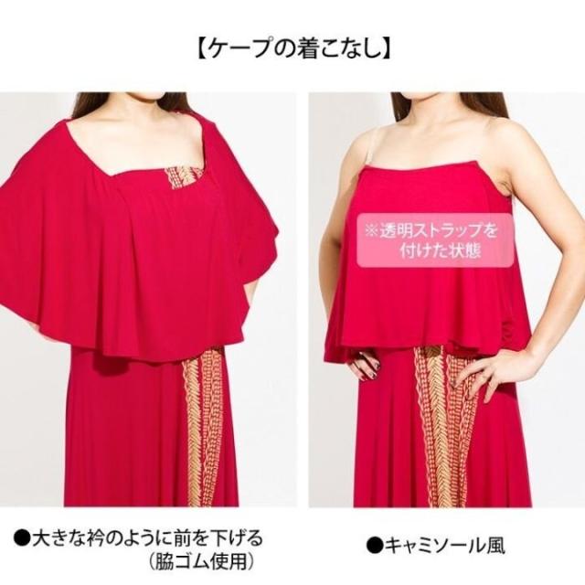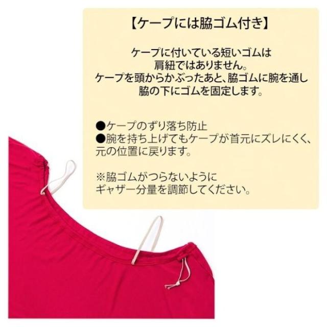 Mサイズ:ケープ:着丈 36cm 肩幅 〜100cm(ゴム) ワンピース:着丈 106cm 胸囲 60〜80cm(ゴム) Lサイズ:ケープ:着丈 36cm 肩幅〜100cm(ゴム) ワンピース:着丈 106cm 胸囲 66〜86cm(ゴム)