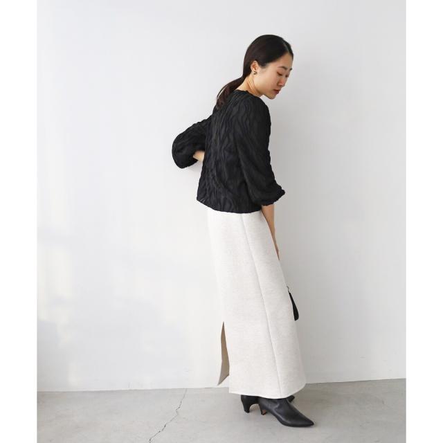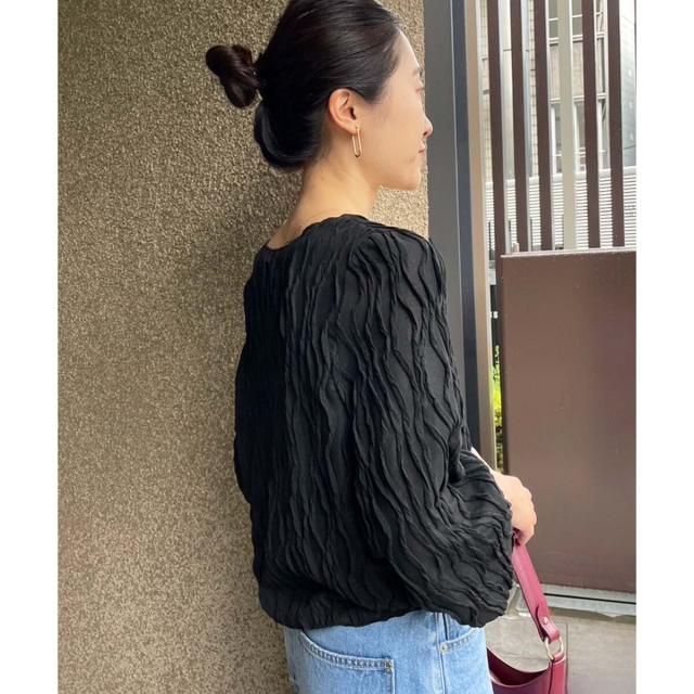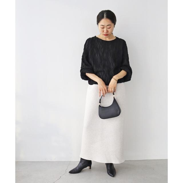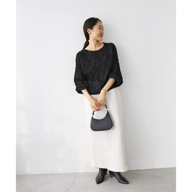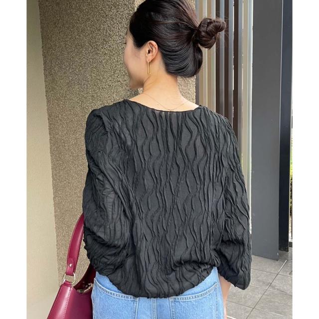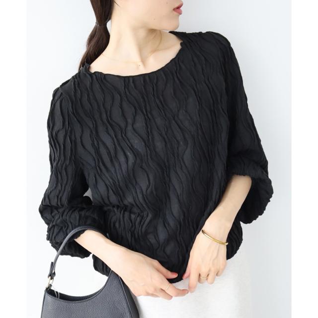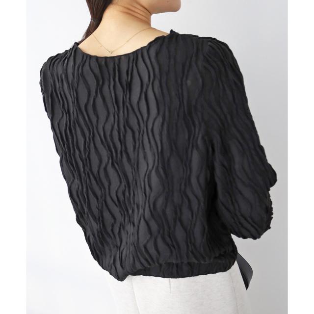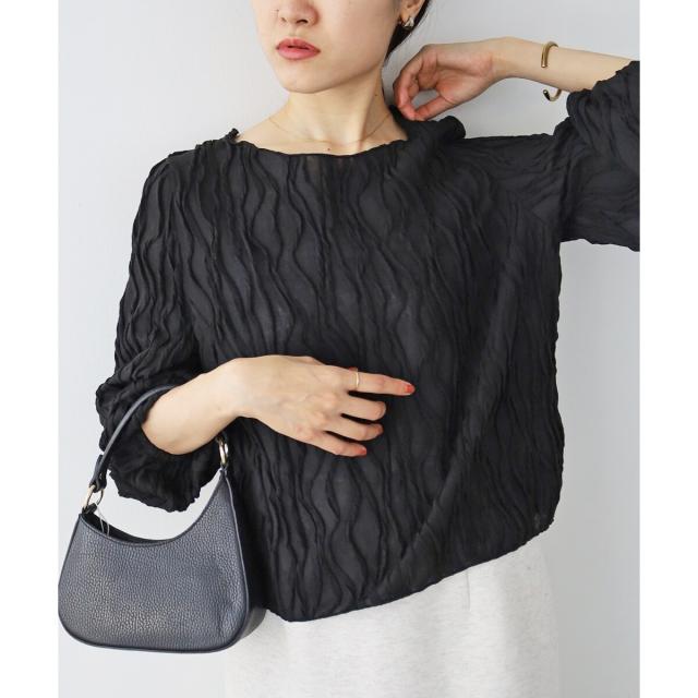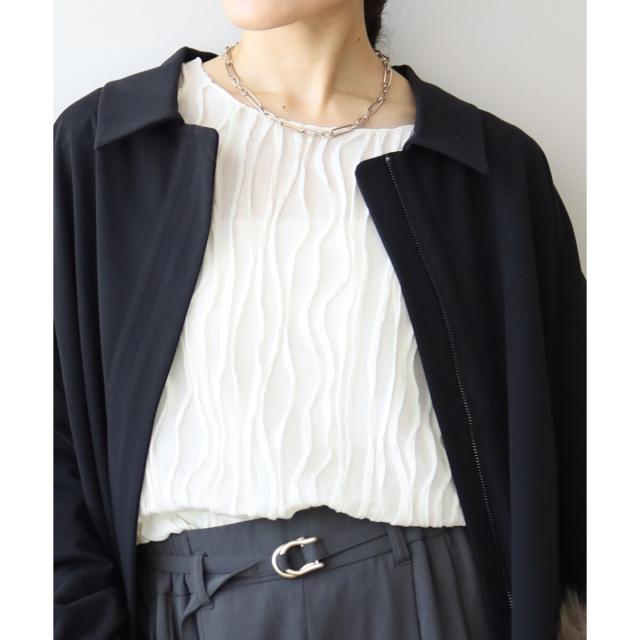 立体的なウェーブ柄がポイントのカットソー。シアー素材が女性らしく大人な雰囲気を演出してくれます。