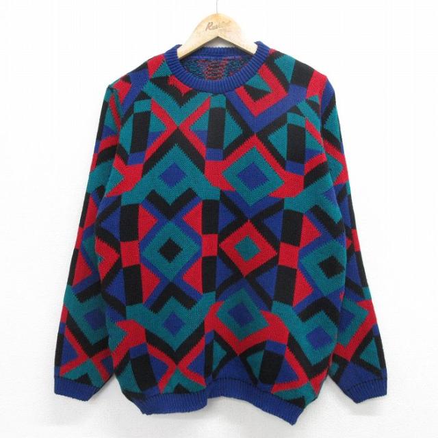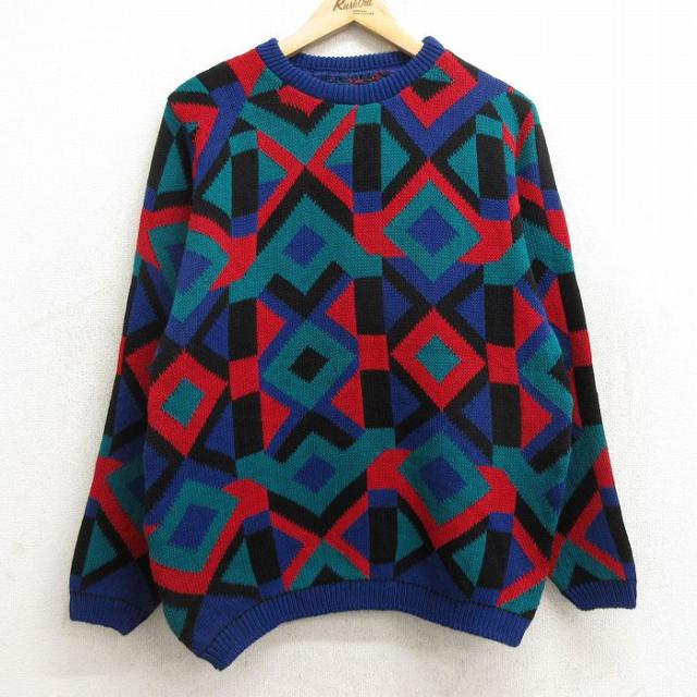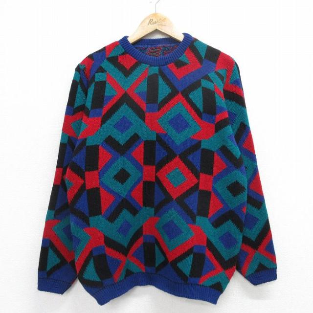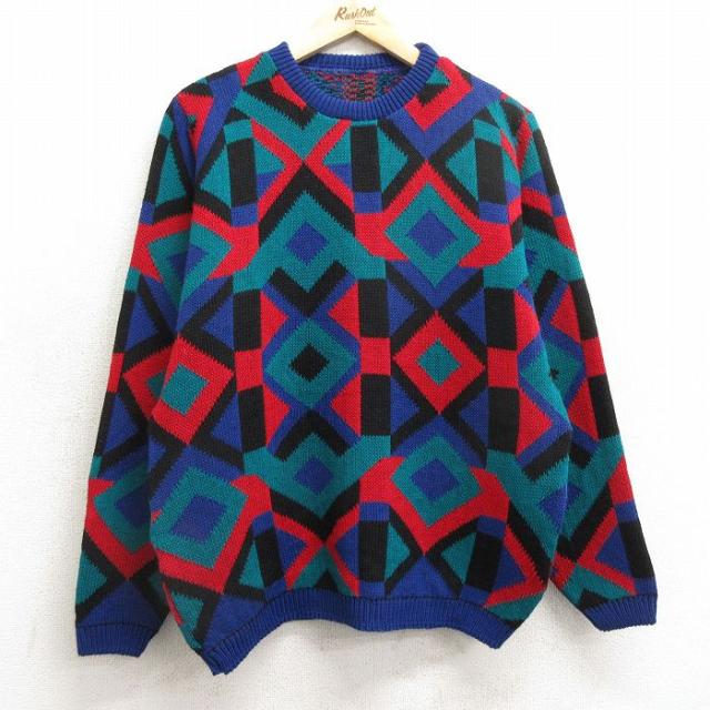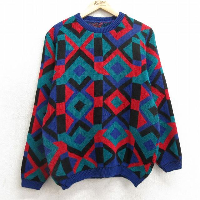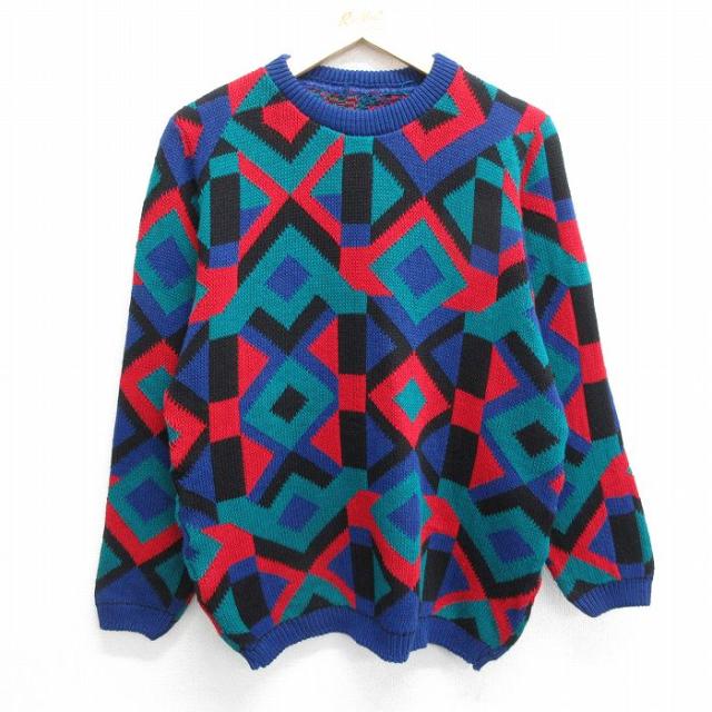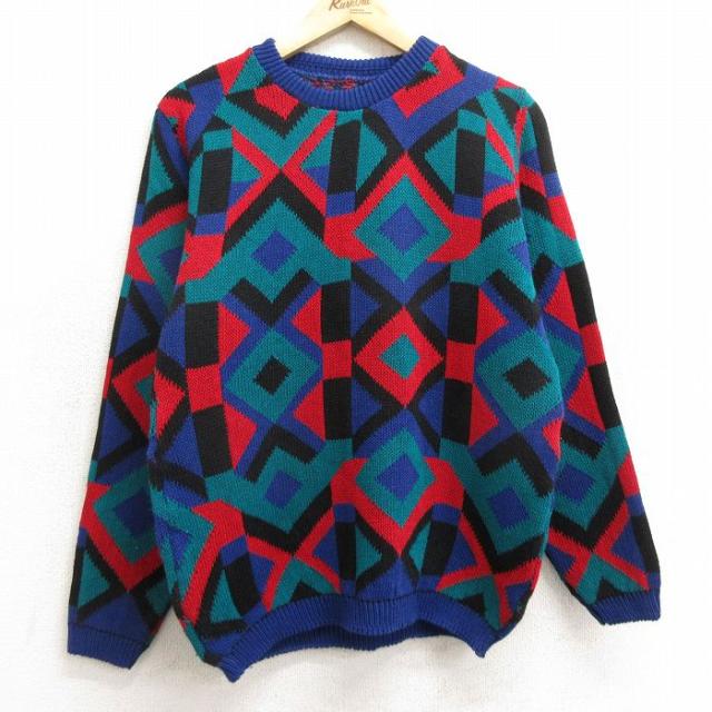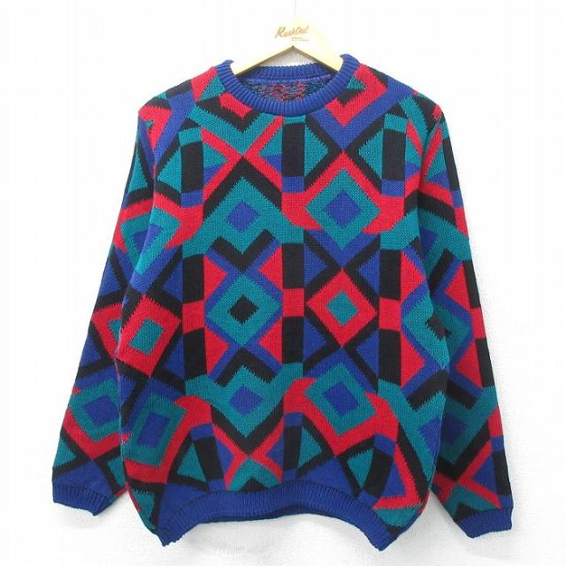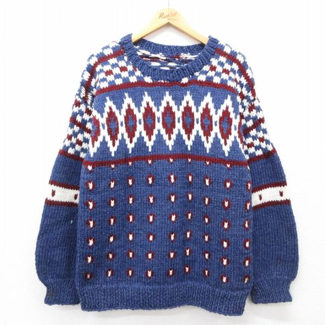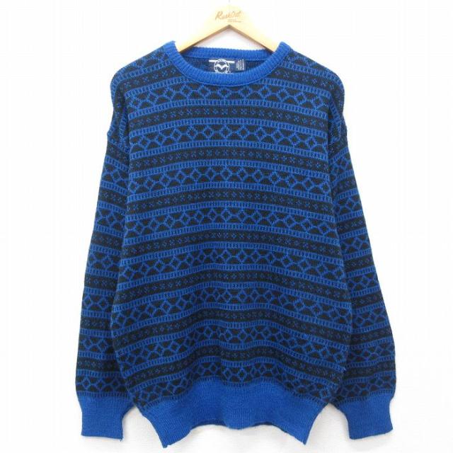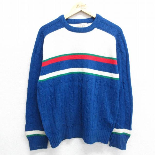 古着 長袖 セーター メンズ クルーネック 青他 ブルー Mサイズ 中古 ニット トップス 中古 古着
