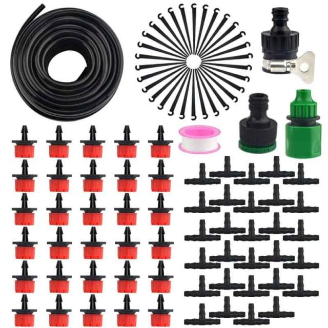 高品質のUV耐性材料とABSプラスチック、1/4 "PEチューブ、耐久性と頑丈さでできており、点滴灌漑システムのセットが付属しています。一度に様々な植物の水需要を満たすために、ノズルを調整することができます。