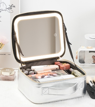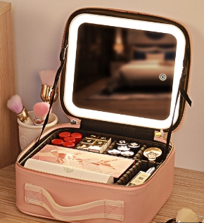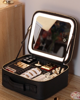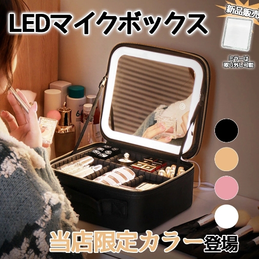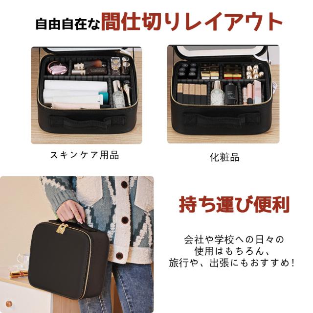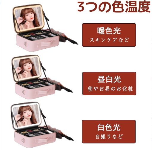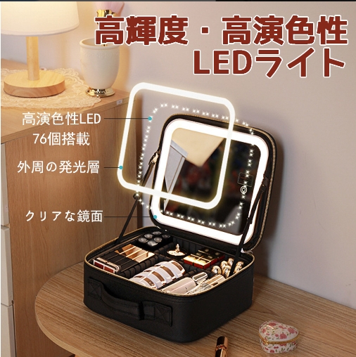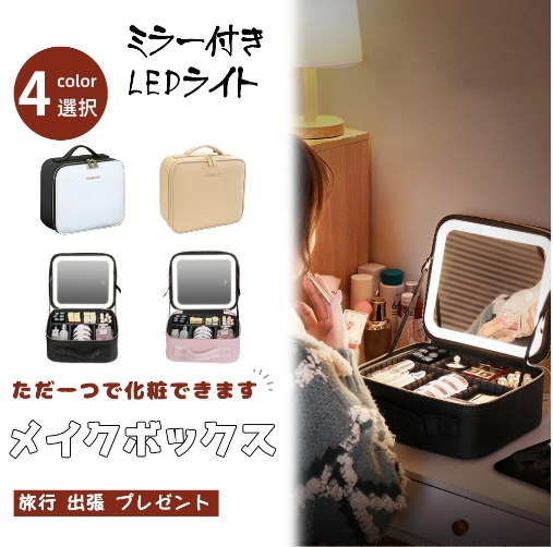 メイクボックス ライト付き メイクボックス 鏡 ミラーは取り外し可能 鏡付き 持ち運び LEDライト 大容量 化粧箱 ミラー付き 化粧ボックス コスメボックス メイクポーチ 化粧品収納 無段階明るさ調節 旅行 誕生日 プレゼント