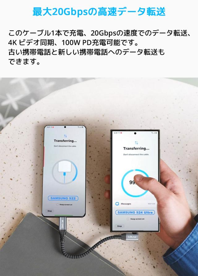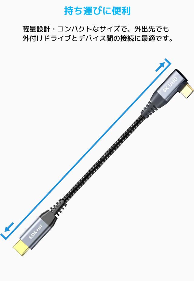 LDLrui USB C to C L字ケーブル 30cm USBケーブル 20Gbps データ転送 充電ケーブル アンドロイド スマホ iPhone 高速転送 4K@60Hz E-markerチップ