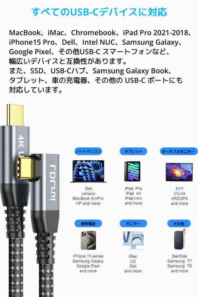 ケーブルタイプ:USB C to C L字