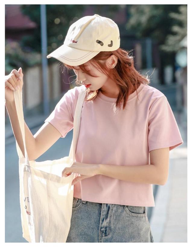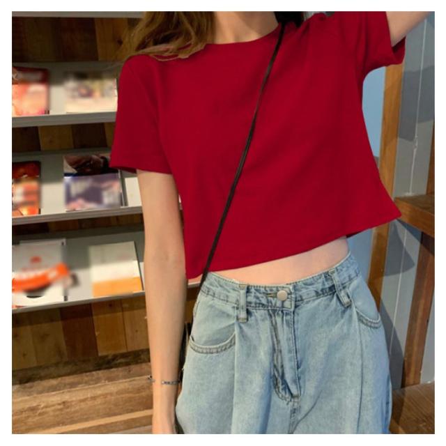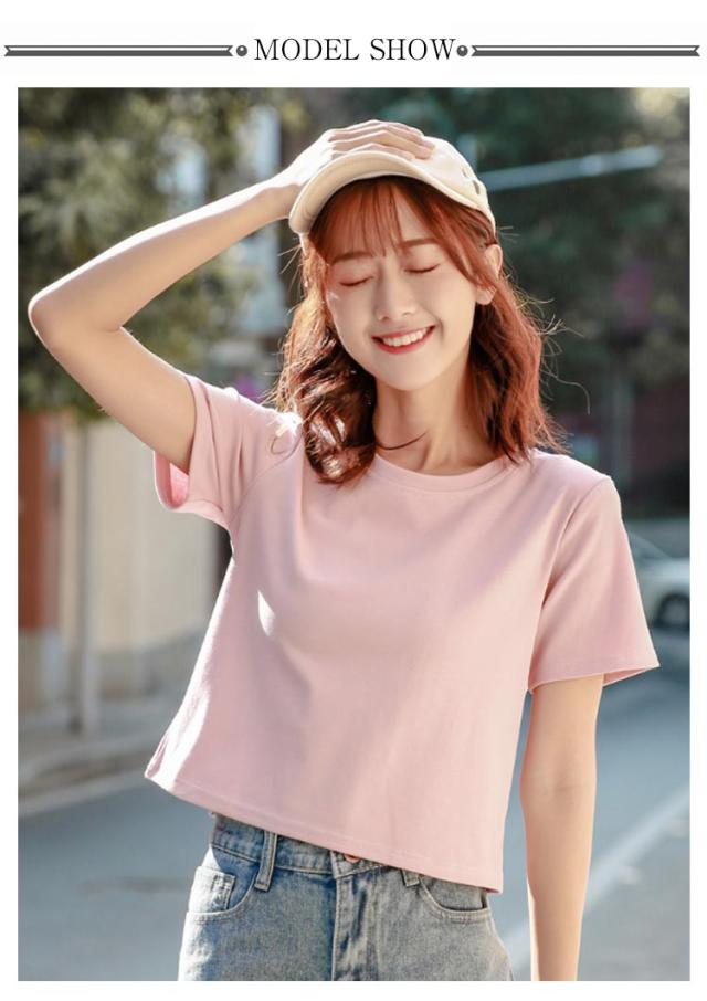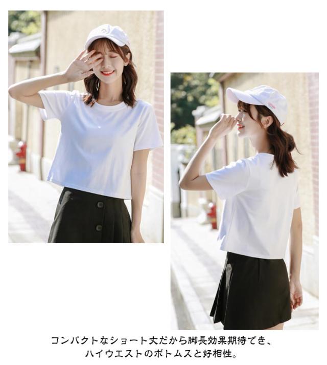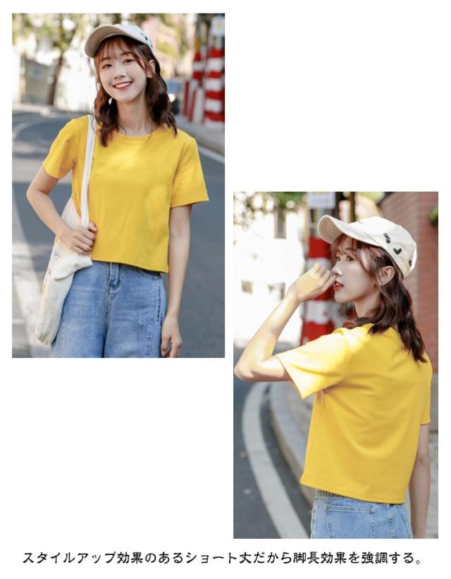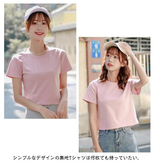 丸首 2枚セット クロップド丈tシャツ ラウンドネック tシャツ レディース ショート丈 トップス 半袖tシャツ 脚長効果 カットソー シンプル 7色 2枚セット おしゃれ 無地 夏 20代 10代