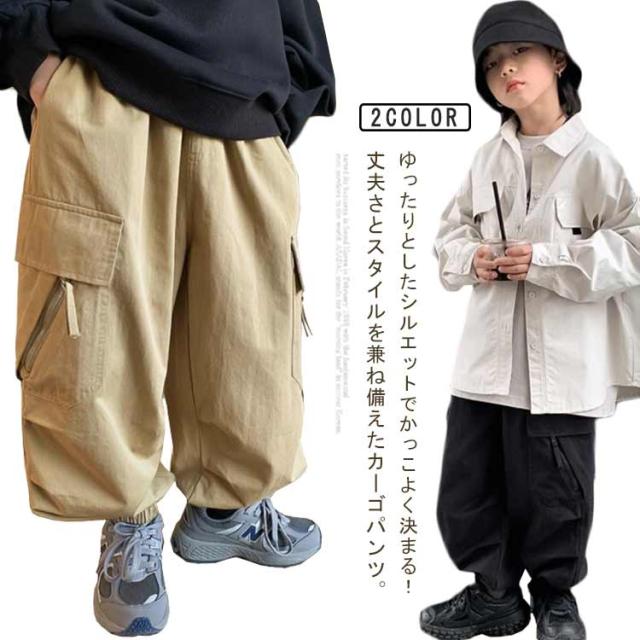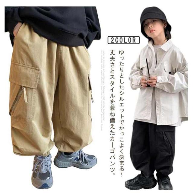 キッズ パンツ ジュニア ロングパンツ カーゴパンツ チノパン ボトムス 子供服 カジュアルパンツ 長ズボン ズボン 無地 テーパード 女の子 通学 通園 ミリタリー カーゴパンツ 小学生 ワークパンツ 子ども 裾ゴム ウエストゴム ゆったり 秋冬服