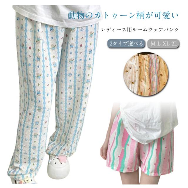 ステテコ レディース ルームウェア 動物 かわいい ショート丈 ステテコ レディース 秋 パンツ ズボン 春夏 カトゥーン柄 虹 クマ ロング丈 リラックスパンツ イージーパンツ ロングパンツ ショートパンツ 部屋着