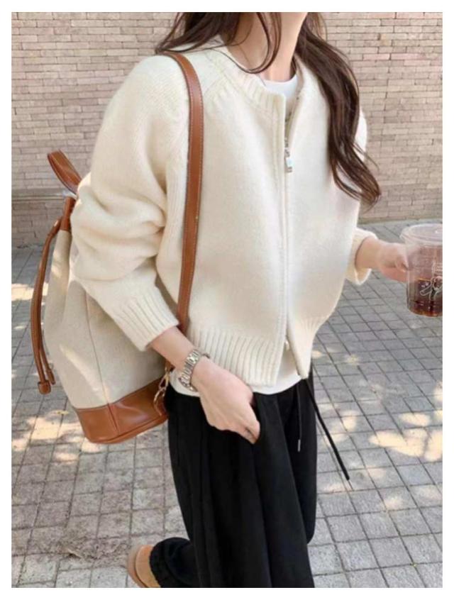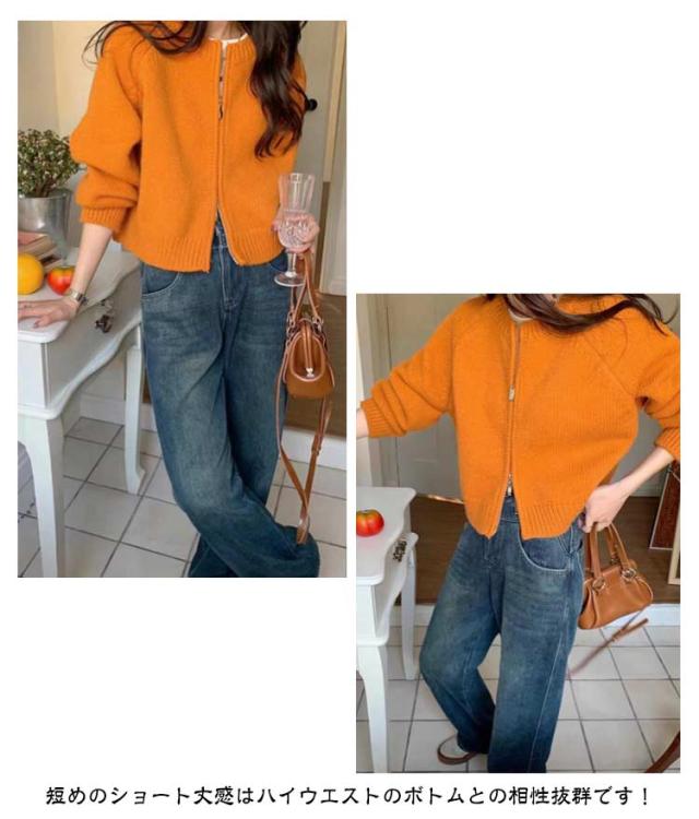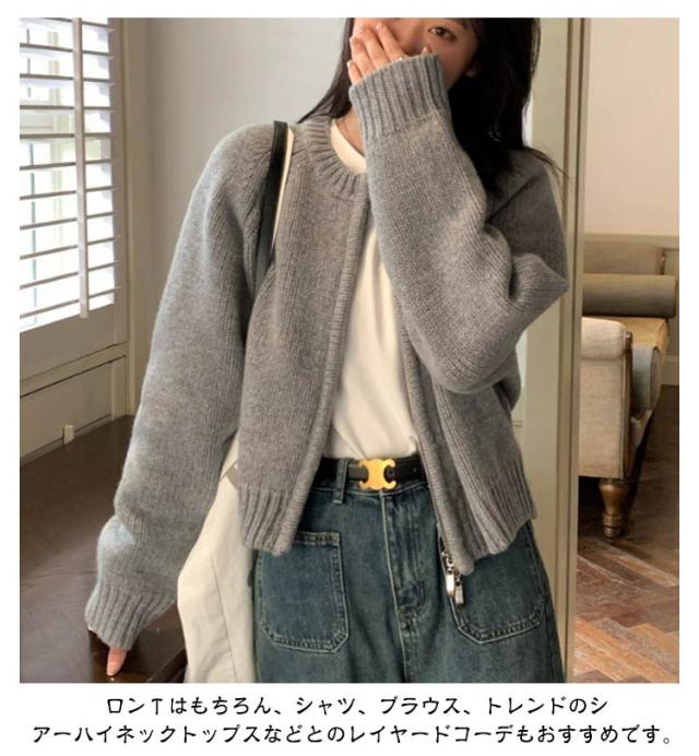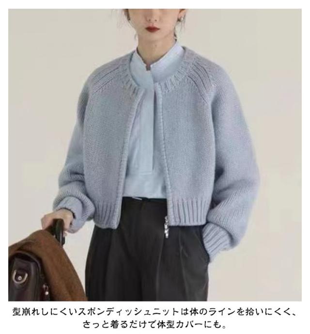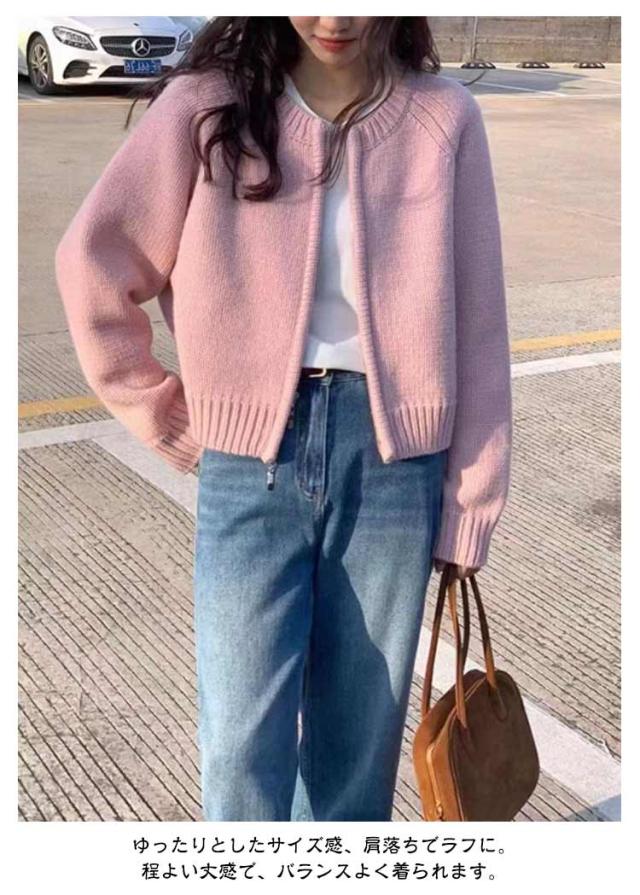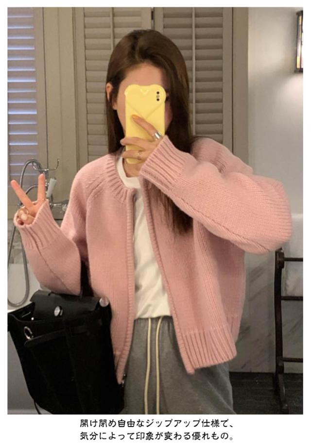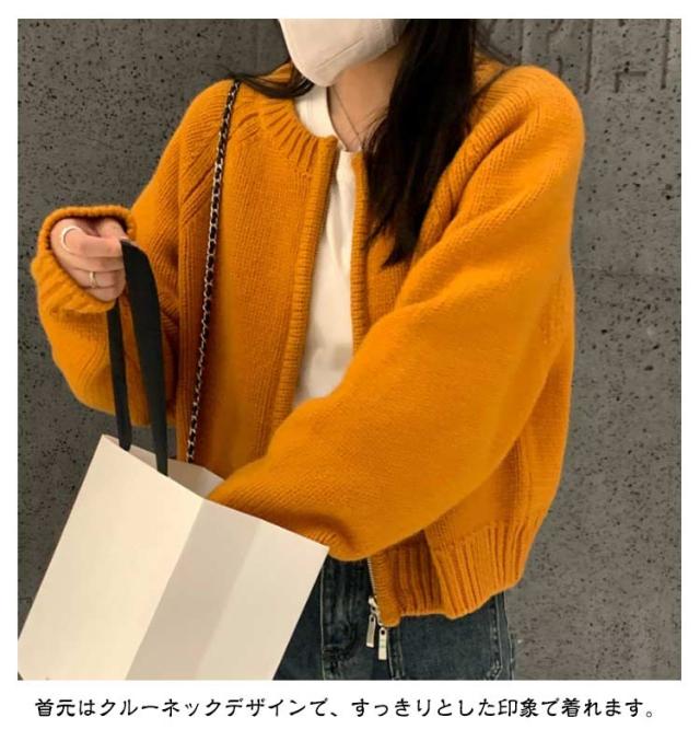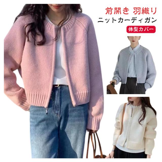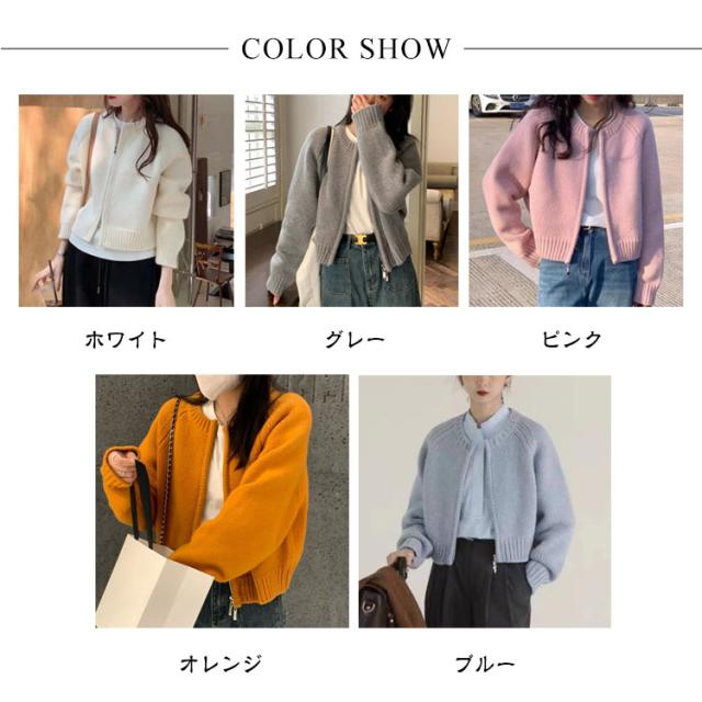 ジャケット ショート丈 ニットカーディガン レディース カーディガン パーカー ライトアウター ノーカラー ジップアップ ジップアップ トップス 前開き ニット セーター ニット トップス カーディガン カーディガン 体型カバー ホワイト グレー ピンク オレンジ