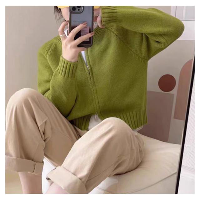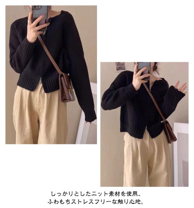 カーディガン ダブルジップ アウター レディース ジップアップ ニットトップス ニットセーター アウター カーディガン カーディガン フルジップ 長袖 クロップド ショート丈 ニット ライトアウター 着?せ おしゃれ