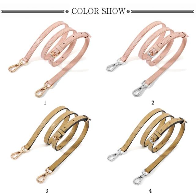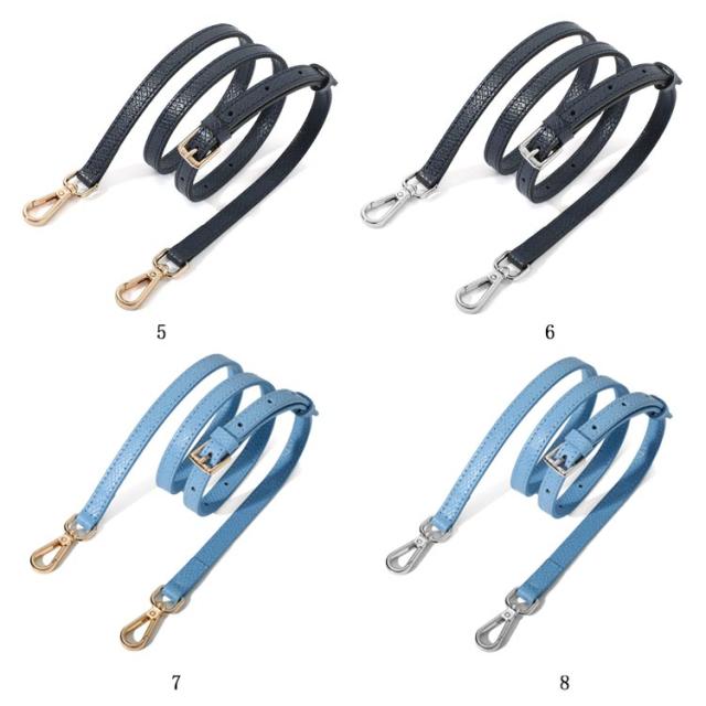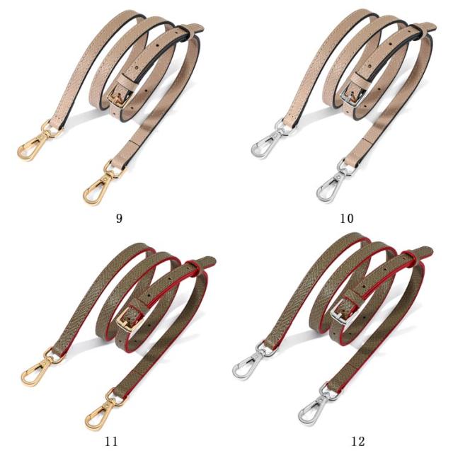 | 本革 ショルダーストラップ 選べるシルバー・ゴールド金具! 全10色 お手持ちのショルダーバッグに取り付けるレザー製の交換用ベルトです。 いずれも両端に金具が付いた脱着可能式。 幅1.2cmで、どんなコーデにも合わせやすく、95cmから115cmまで、長さ調節が可能です。 | |