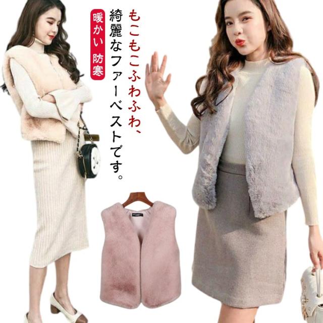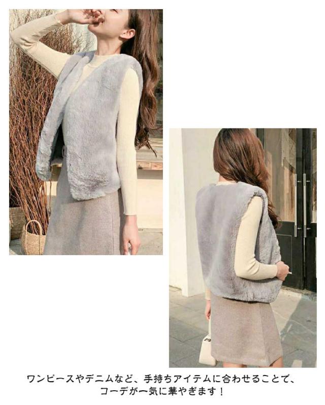 モコモコ ボアベスト ファーベスト ベスト ショート フェイク 羽織り ファー ノースリーブ 前開き ファーベスト Vネック コート ノーカラー 秋冬 ボア ジャケット ジレ 上着 袖なし ふわふわ アウター 無地 大人 上品 きれいめ 厚手 暖かい