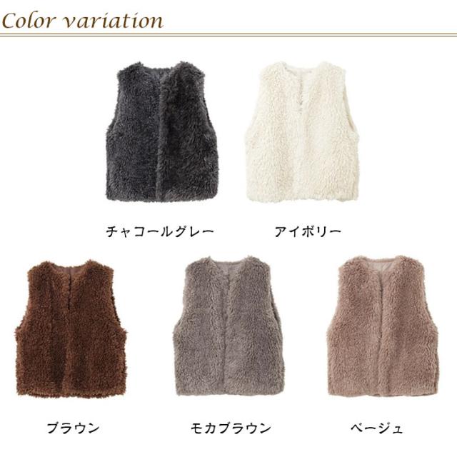 羽織り ショート ベスト ジレ ノーカラー ファー ファーベスト 前開き フェイク ファーベスト ボア ボアベスト Vネック コート ノースリーブ 秋冬 ボアジレ アウター ジャケット 上着 袖なし ふわふわ モコモコ 無地 大人 上品 きれいめ
