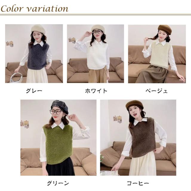 シャギー ニットベスト レディース ベスト モヘア レイヤード ニット 秋冬 Uネック おしゃれ ジレ トレンド トップス 長毛 シャギーニット プルオーバー セーター ノースリーブ ニットベスト きれいめ 黒 ブラック