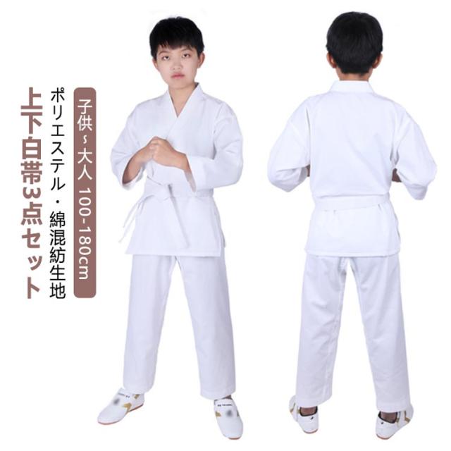 柔道授業 空手衣 柔道着 授業用 小学生 上下セット 大人 100-180cm 子供 入門者向け 練習用 白帯 セット 男女兼用 空手着 空手 道衣 上下 + 帯 3点セット 白帯 ジュニア 空手道着 道着 合気道 柔道着 中学生 空手スーツ 綿