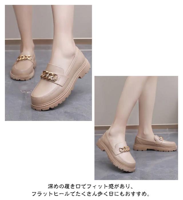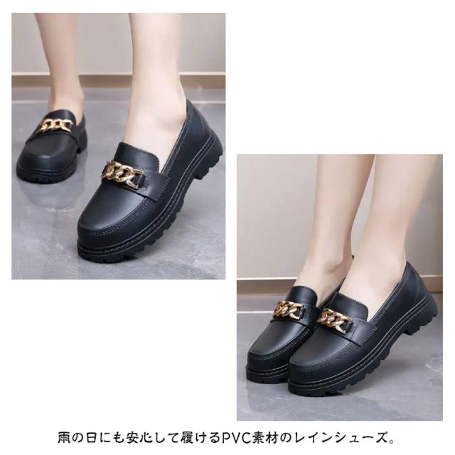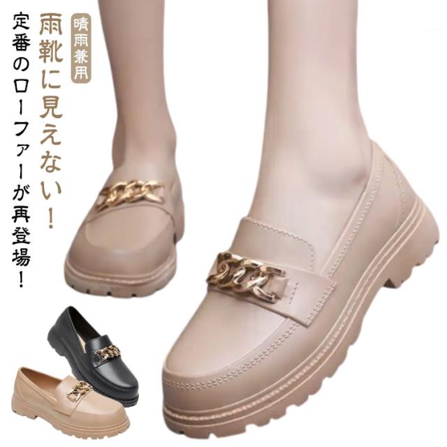| 雨靴に見えない!定番のローファーが再登場! 雨の日にも安心して履けるPVC素材のレインシューズ。 カジュアルに履けるローファーデザイン、履くだけでこなれた足元に。 深めの履き口でフィット感があり、フラットヒールでたくさん歩く日にもおすすめ。 防水で雨の日や天気が悪い日も安心して歩くことができます。 普段使いはもちろん、学生さんは雨の日用の通学シューズとしてもおすすめです! | |