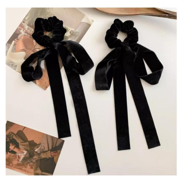 シュシュ キッズ ヘアアクセサリー ロングリボン リボン 小顔 大人 通勤 ベルベット ブラック ヘアゴム ゴム 結婚式 【2個セット】ベロアリボン ベロア 髪飾り かわいい ポニーテール 結ぶ 黒 おしゃれ 可愛い 卒業式 SNS 韓国風