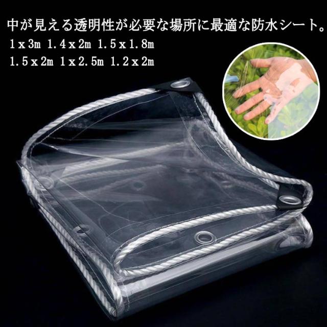 | 中が見える透明性が必要な場所に最適な防水シート。1x3m 1.4x2m 1.5x1.8m 1.5x2m 1x2.5m 1.2x2m 厚手なPVC製で、柔らかくて丈夫、引っ張りに強く、耐候性、防水力にも優れています。 収納する際も簡単に折り畳むことができます。 補強されたハトメ付きで取付け・取外しが簡単。 往来の多い店舗出入口のカーテンや青果店の暖簾、園芸カバーや商品の雨、雪、霜よけディスプレイカバー。 各種養生、資材野積み、風雨や暴雨の緊急を要する際の防水簡易カバーや屋外防寒対策、防災等。 屋外土木建築や建設現場をはじめ農業、林業、水産業の軽作業やDIYやレジャー、アウトドア用品としても 間仕切りや敷物として使用され、プロから一般家庭まで幅広くご使用頂いております。 | |