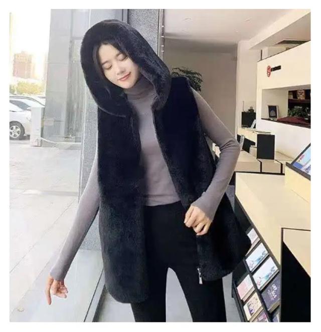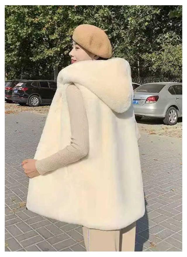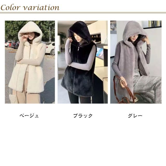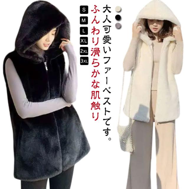 | 大人可愛いファーベストです。 S-3XL ふんわり滑らかな肌触り 一枚プラスするだけで最旬コーデに♪ フード付きで小顔効果も | |