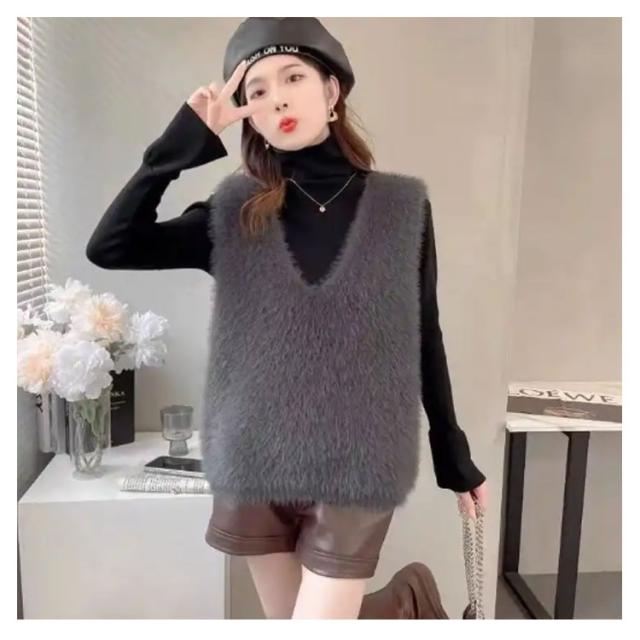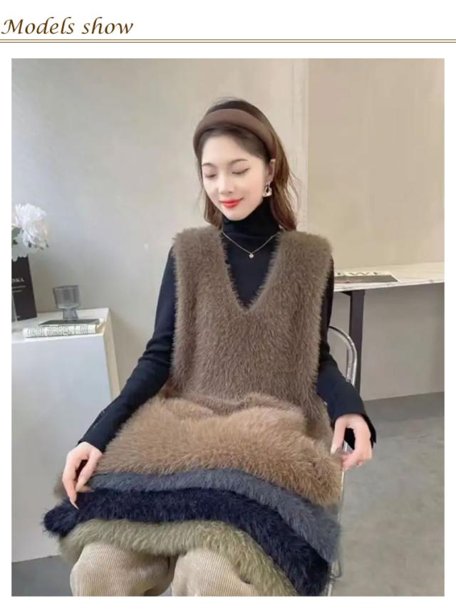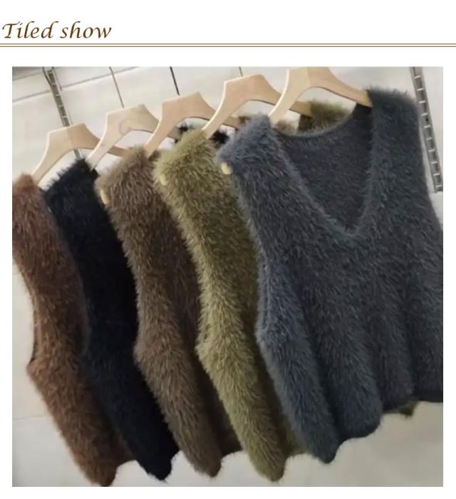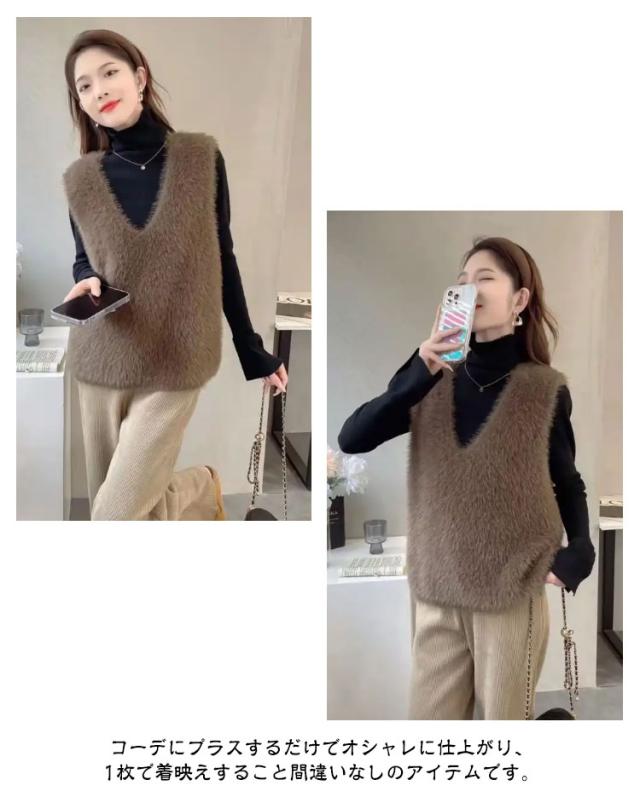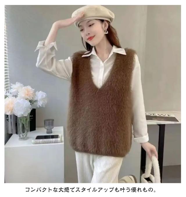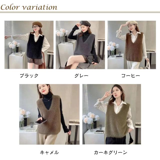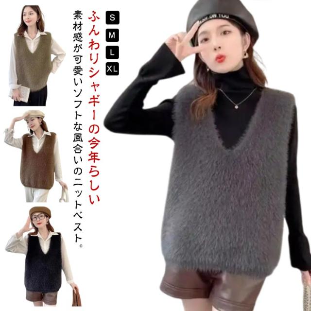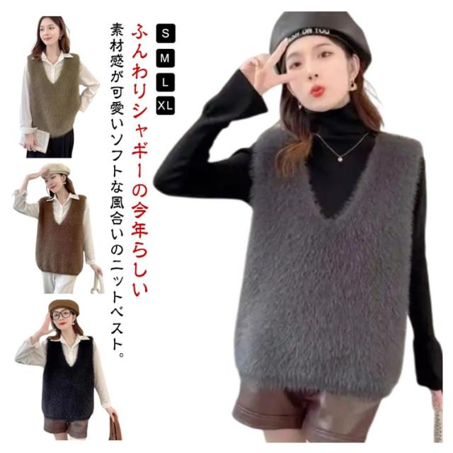 S-XL ニットベスト 秋冬 Vネック ニット レディース シャギーベスト モヘア ベスト レイヤード プルオーバー S-XL トレンド トップス 長毛 シャギーニット シャギー セーター ノースリーブ 大きいサイズ おしゃれ きれいめ 黒 ブラック