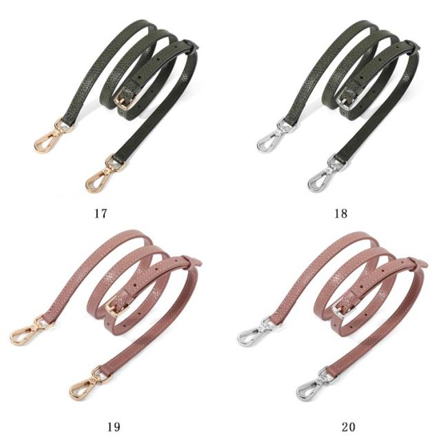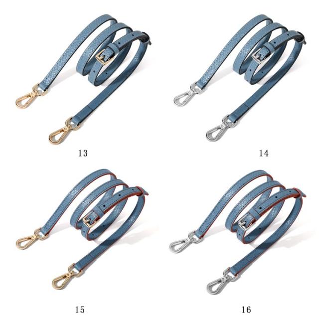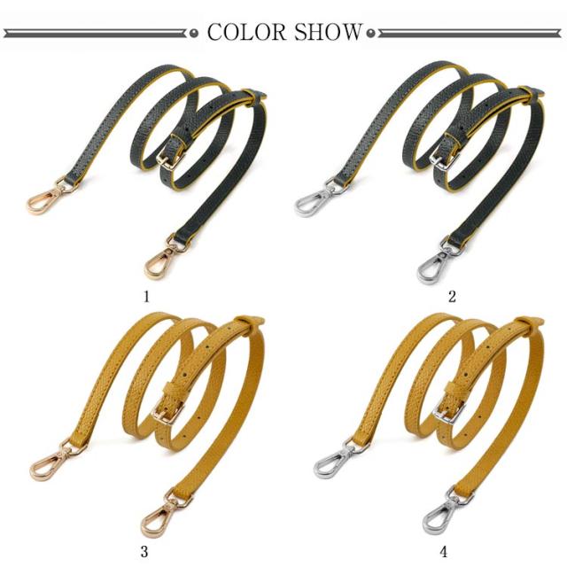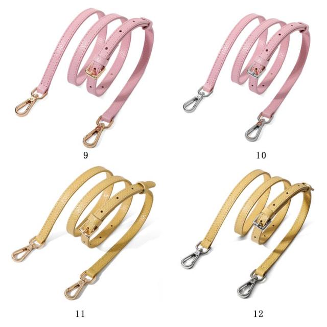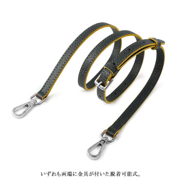 | 本革 ショルダーストラップ 選べるシルバー・ゴールド金具! 全10色 お手持ちのショルダーバッグに取り付けるレザー製の交換用ベルトです。 いずれも両端に金具が付いた脱着可能式。 幅1.2cmで、どんなコーデにも合わせやすく、95cmから115cmまで、長さ調節が可能です。 | |